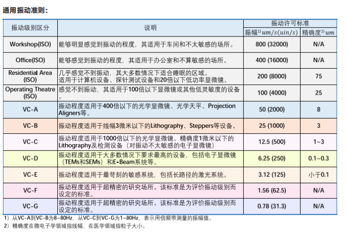 為了作出區分,人們進行了很多的研究,并且發現,根據頻率的不同,設備所作出的位移響應雖然不同,然而速度響應幾乎是相同的。因此,為了規定各種活動以及對于設備所允許的振動***標準,通常使用 1/3 倍頻帶速度譜。這***標準曲線的優點是能夠表示用速度的有效值來表達出振動,而非用位移或加速度來表達,以及如果設備種類相同,性能開始受影響的速度值也基本相似。