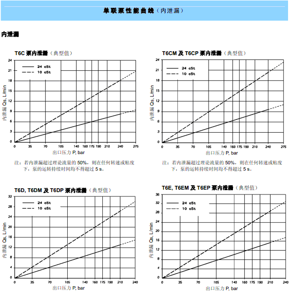 ▲低轉速。(600 rpm,車用型泵為400 rpm)、低壓力及高粘度(860 cSt,車用型泵為2000 cSt)運行能力 - 使T6 系列葉片泵能適應低溫工況,功耗小且無卡滯危險;