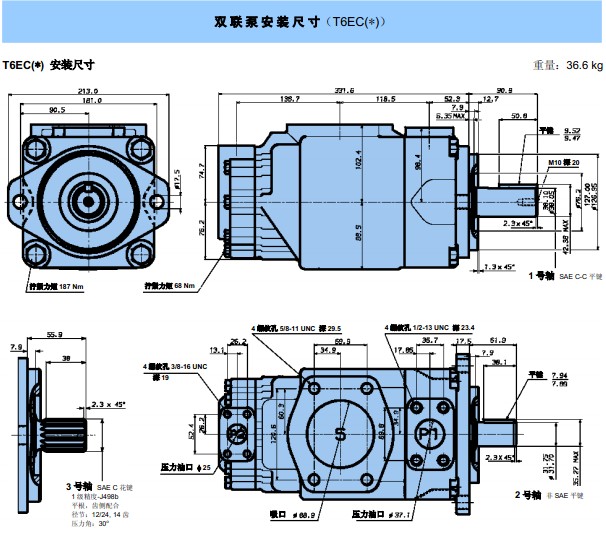 T6ec系列葉片泵是高壓力、低噪音、高效率的定量葉片泵。 丹尼遜油泵具有工作壓力高,可以達(dá)到275Bar,如降低工作壓力的使用,還可以延長油泵的工作壽命!容積效率高,由此可以提高生產(chǎn)率,減少發(fā)熱和降低液壓設(shè)備的運(yùn)行成本。機(jī)械效率高,從而減少了能量的消耗。轉(zhuǎn)速范圍寬,轉(zhuǎn)速范圍是600---2800rpm,可以優(yōu)化工作狀態(tài),降低噪音。抗污染能力強(qiáng),丹尼遜油泵采用的是雙唇結(jié)構(gòu)的葉片,具有 強(qiáng)的抗污染能力,使用壽命長。適應(yīng)液壓介質(zhì)的粘度范圍大,能在低溫下啟動和高溫下運(yùn)行,能提供高壓力,噪聲低,而且容積效率高