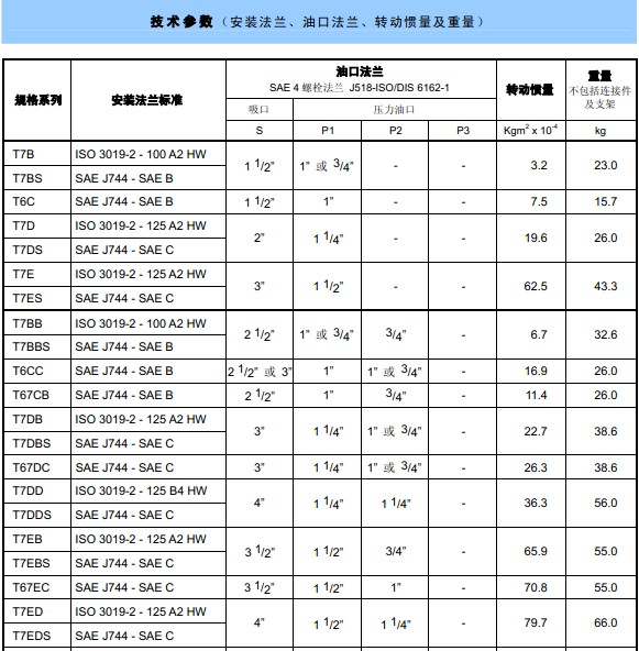 DENISON丹尼遜T7B, T6C, T6D, T6E系列單聯葉片泵 高工作壓力從190bar至320bar可選, 大排量從40ml/rev至269ml/rev可選。泵的重量從7.0Kg至43.3Kg。此系列葉片泵主要用于工業和行走機械。
