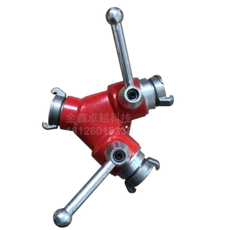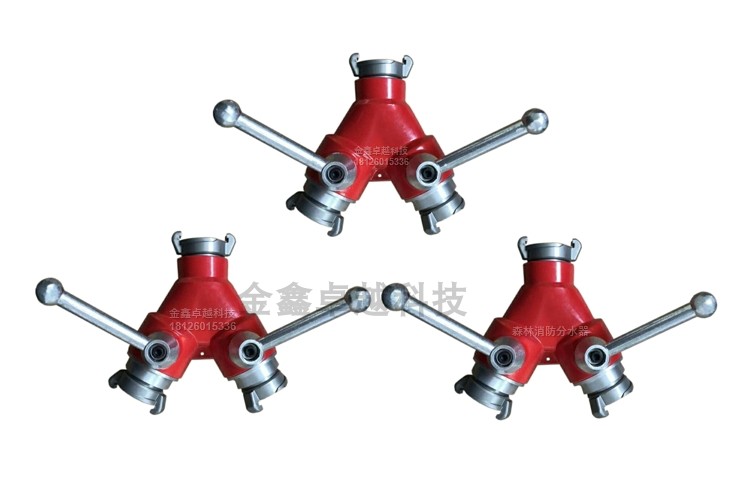 二分水器主要裝配于水帶干線上, 個分水器有 個進水口和兩個出水口,可以同時使用, 也可以分別使用,出水口上均有閥門裝置,可以隨時開啟和關閉,控制水流,便于調換支線配件。