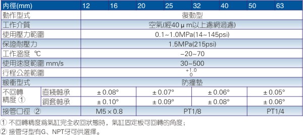 青銅滑動(dòng)軸承:適用于氣缸作制動(dòng)等耐徑向負(fù)荷動(dòng)作的場(chǎng)合,較 般之制動(dòng)缸相較提升2倍以上耐橫向沖擊力,且具有更大的扭轉(zhuǎn)剛度。