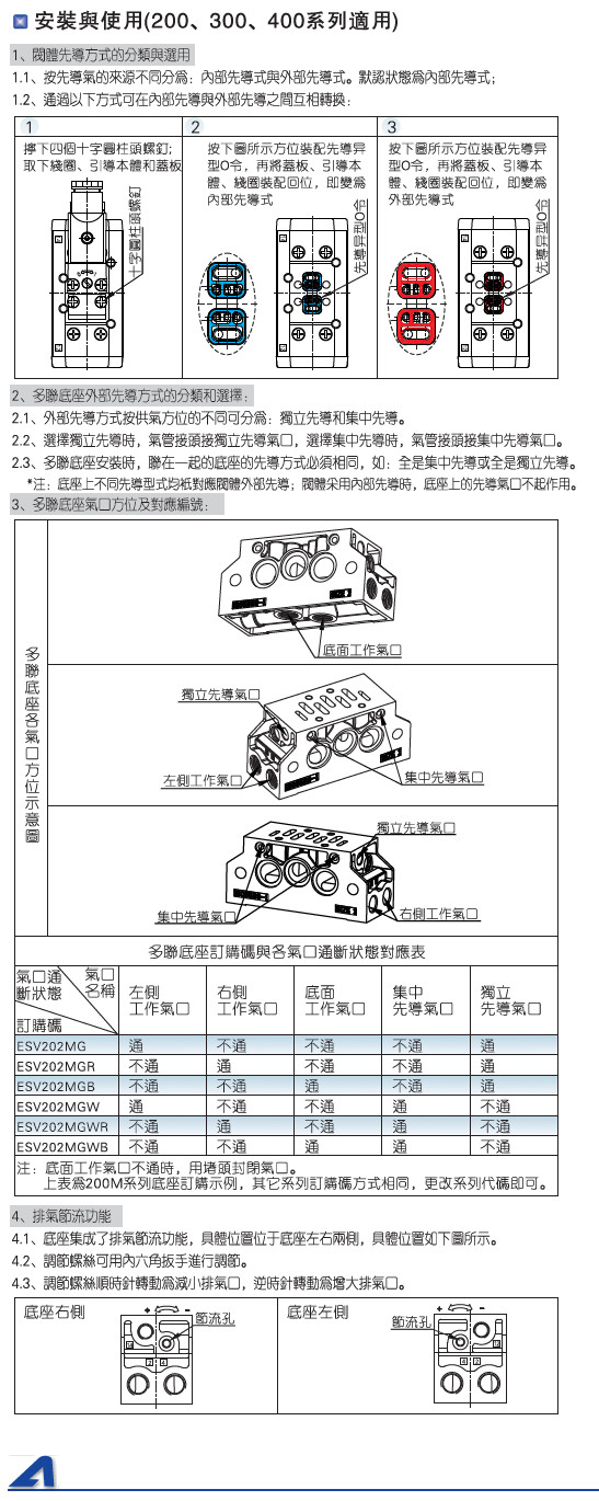 4、200、300、400系列改變密封件的裝配方向即可實現閥體內部 導式、外部 導式、氣控閥之間的轉換;