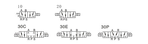 4、安裝時注意氣體流動方向,P為進氣口、A(B)為工作口、R(S)為排氣口;