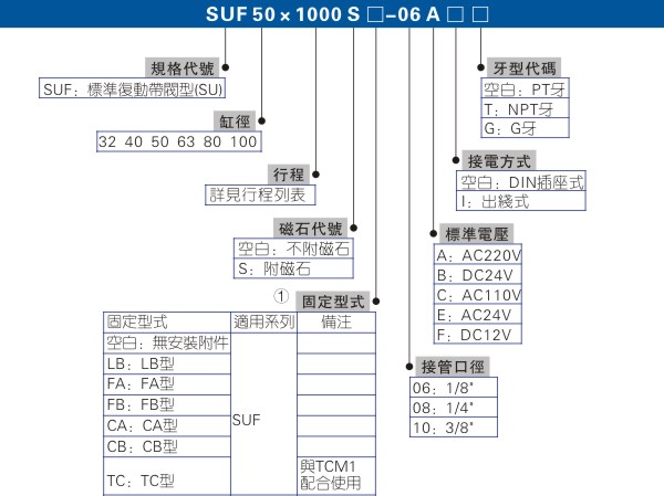 1、屬于標(biāo)準(zhǔn)氣缸與閥組合派生系列,配合4M210及4M310使用,缸徑32、40、50配4M210閥,缸徑63、80、100配4M310閥;