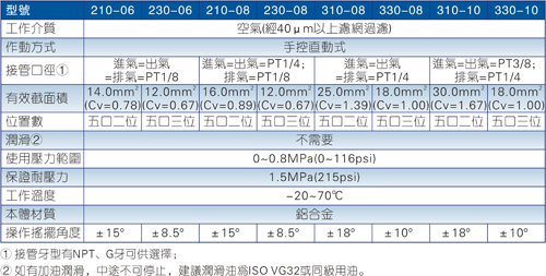 1) 五口三位置手動復位型手動閥采用彈簧鋼珠定位,比較容易切換,使用時請注意勿用力過度導致控制位置錯誤造成誤動作;