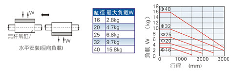 1、氣缸負載大小由理論保持力(理論推力)決定,為確保氣缸的正常使用,負載大小不可超過下表規(guī)定的氣缸理論保持力(理論推力);