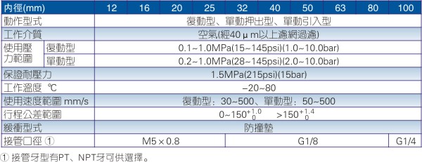 6、因氣缸前蓋及活塞均較短, 般行程不可選擇太大;