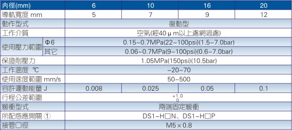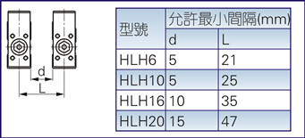 3、附感應開關的滑臺缸在安裝時,相鄰兩氣缸之間的間隔如沒達到右表所規定值時,感應開關可能會產生誤動作,故必須使用超過右表尺寸以上的間隔;