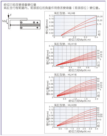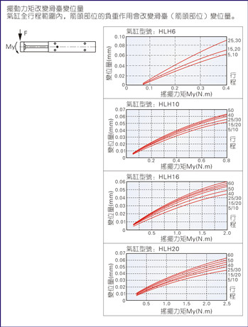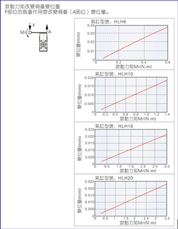 1.2、不同類型扭矩作用于氣缸上時,會產生不同程度變位量,具體參考下表。