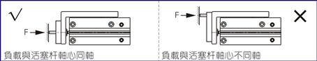 4、輸出力輸出到滑臺上時,務必將輸出力輸出到活塞桿軸心上,不可偏心(如下圖所示);