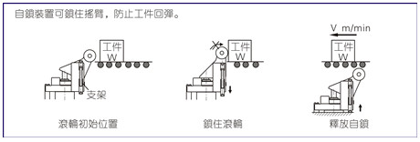 4、杠桿式滾輪結構阻擋氣缸配有自鎖裝置,可防止搖臂回彈對被阻擋物體的回推;