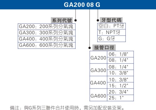 1、安裝在G系列調壓閥(調壓過濾器)與G系列給油器之間,對氣流進行分支, 路進入給油器進行給油潤滑,另 路(二路)直接進入使用設備。