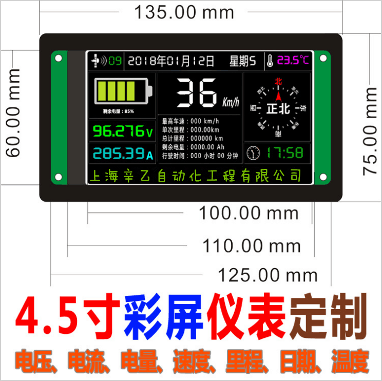 XY1823 4.5寸TFT彩屏高精度汽車電壓電流電量表庫侖計儀表定制
