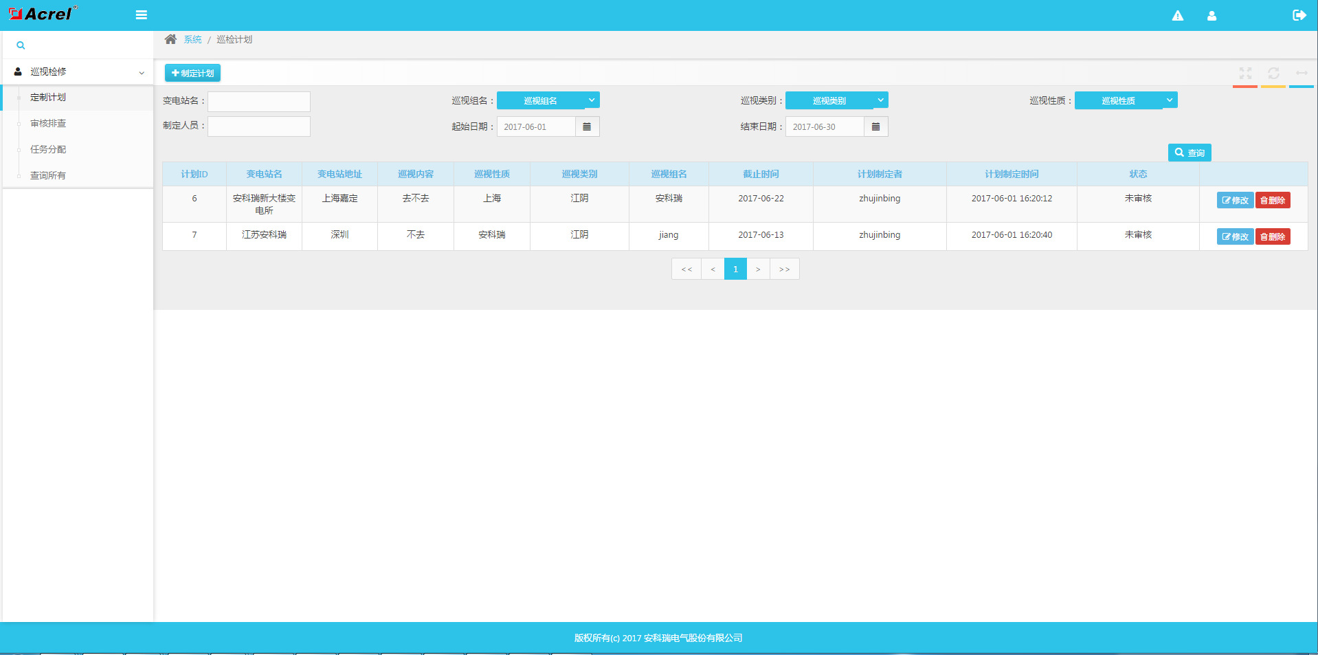 通過系統(tǒng)編制巡檢計(jì)劃,經(jīng)審核后生成巡檢任務(wù)推送到巡檢人員的手機(jī)上,巡檢人員執(zhí)行巡檢任務(wù)并登記巡檢內(nèi)容;