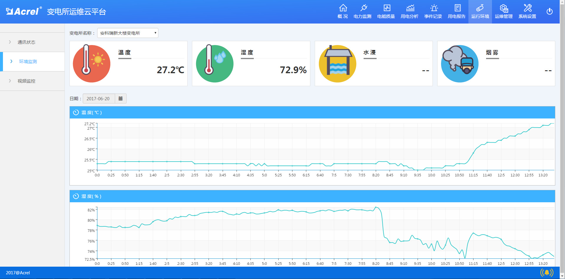 顯示某個(gè)變電所的儀表通訊狀態(tài)、環(huán)境信息(溫度、濕度、水浸、煙霧等)、視頻信息等;