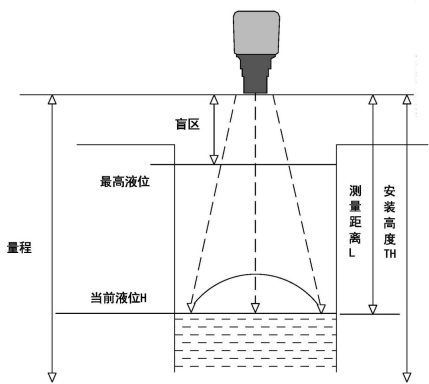 儀表量程指儀表能夠測(cè)量的距離,安裝高度TH應(yīng)小于量程。
