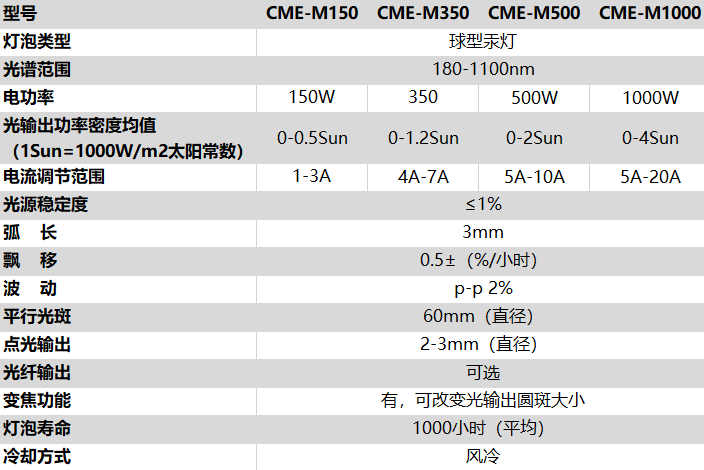 點光源、平行光(直徑可調)和光纖輸出可選;