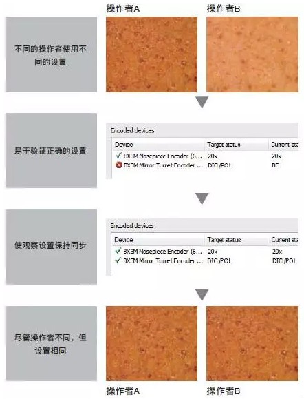 BX53M采用了新的編碼功能,將顯微鏡的硬件設(shè)置與奧林巴斯Stream圖像分析軟件整合在***起。觀察方法、照明強(qiáng)度和物鏡位置全都記錄在軟件和/或手動(dòng)控制器里。編碼功能使顯微鏡設(shè)置能夠與每幅圖像***起自動(dòng)保存,從而使此后還原設(shè)置,以及為報(bào)表提供文檔記錄更加方便。既節(jié)省了操作者的時(shí)間,又程度減小了使用不正確設(shè)置的概率。當(dāng)前的觀察設(shè)置總是清晰地顯示在手動(dòng)控制器和軟件上。