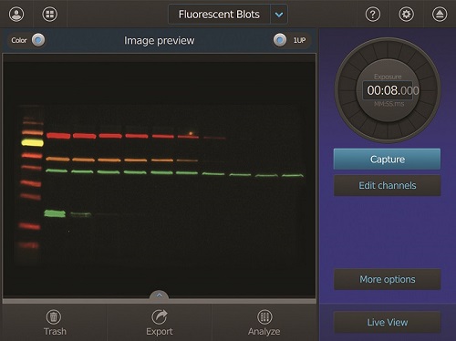 加速您的研究—iBright FL1000具有五個熒光通道,可同時對4色熒光蛋白質免疫印跡進行成像,拓展了在單塊印跡上同時檢測多種蛋白質的能力。從而您可獲取更有意義且更具代表性的比較數據,完善您的實驗。Smart Exposure智能成像技術優化了每個熒光通道的信噪比,進***步改善了多重熒光免疫印跡數據的獲取。