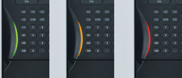操作面板上流線型設(shè)計(jì)的LED警示燈利用顏色和頻閃的不同,很好地起到了全面提示的作用。它采用與大家再熟悉不過(guò)的交通信號(hào)燈完全一致的顏色來(lái)起到警示作用,弧線設(shè)計(jì)又讓乏味的檢測(cè)工作多了幾分俏皮。