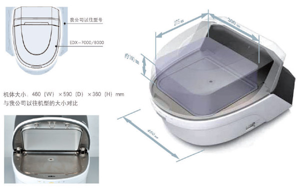 而緊湊的機身,卻擁有zui大可放置200(W)×275(D)×約100(H)mm樣品的大型樣品室。