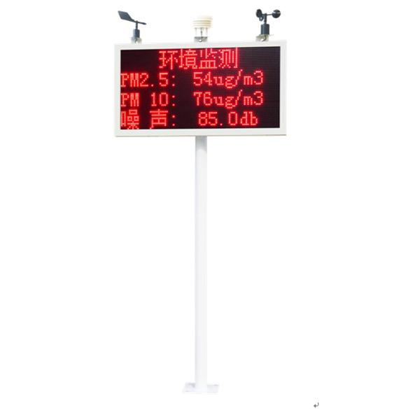 噪聲揚塵監測站是專門針對在建工程項目的監測設備。該設備具有1路百葉盒(溫度、濕度、噪聲、PM2.5、PM10、氣壓、TSP)采集、1路風速采集、1路風向采集、1繼電器輸出(默認可接現場二***繼電器控制霧炮)、1路485從站輸出;該設備可通過GPRS方式將數據上傳監控軟件平臺,同時該主機能夠外接1路LED屏(54cm*102cm)實時顯示當前數值信息。