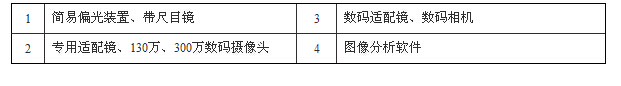 2 | 專用適配鏡、130萬、300萬數碼攝像頭 | 4 | 圖像分析軟件 |