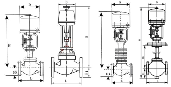 進口電動蒸汽調節閥-外形參數及連接尺寸: